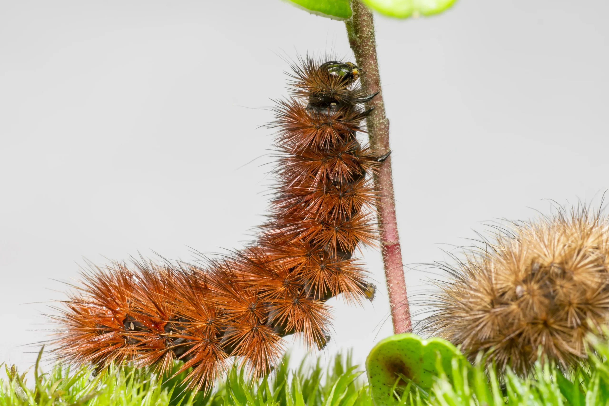 Peligrosa por sus pelos urticantes, afecta a personas y animales, especialmente en áreas con pinos.